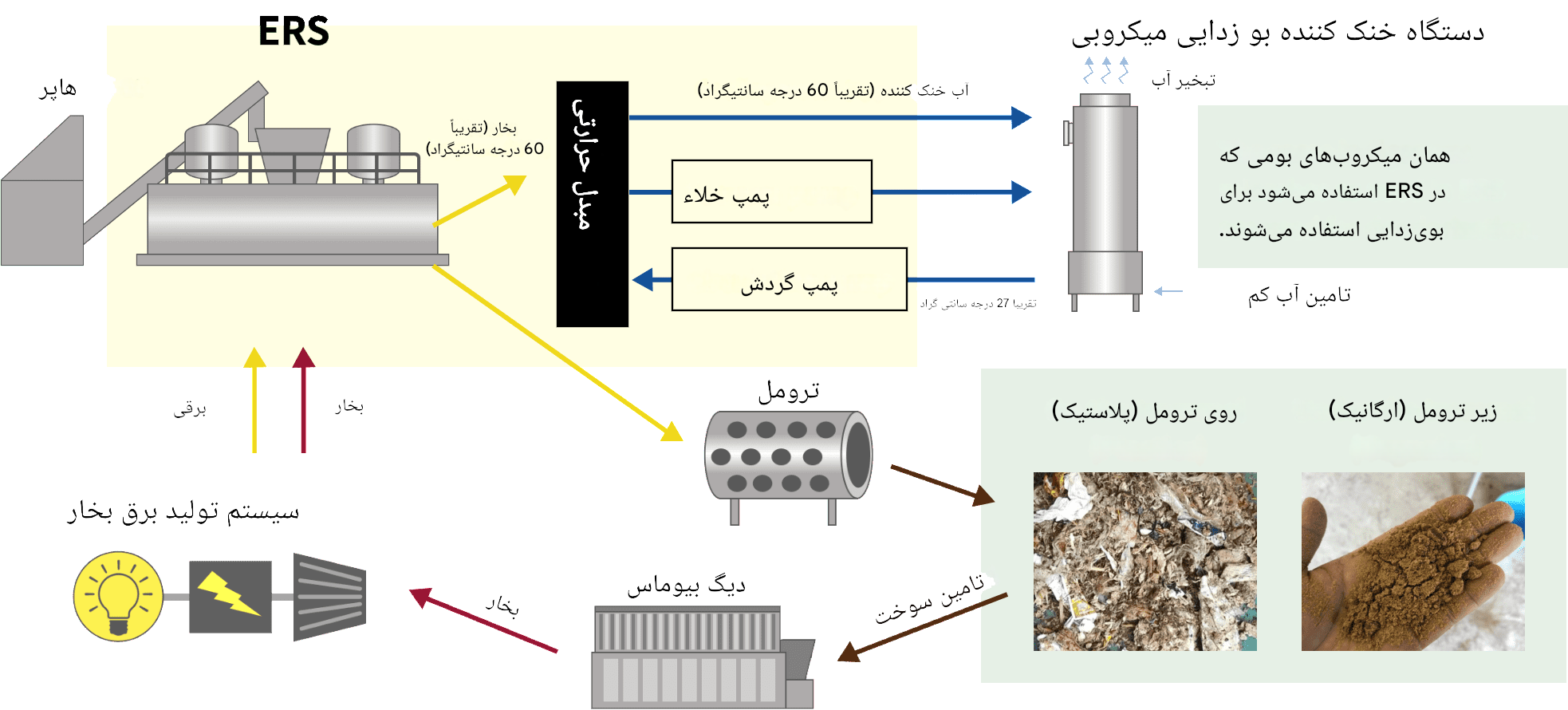 ERS از میکروب های خاص جمع آوری شده از خاک در محل برای فرآیند تخمیر و خشک کردن استفاده می کند. هیچ خطر بیولوژیکی برای محیط میکروبی که در آن ERS نصب شده است وجود ندارد.