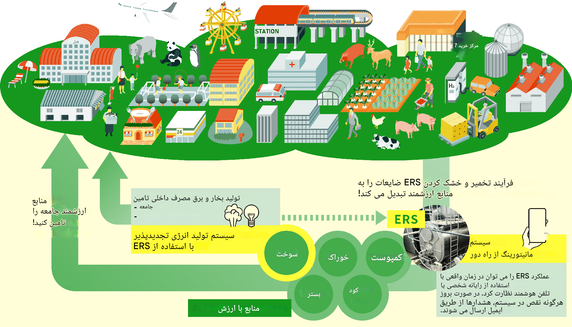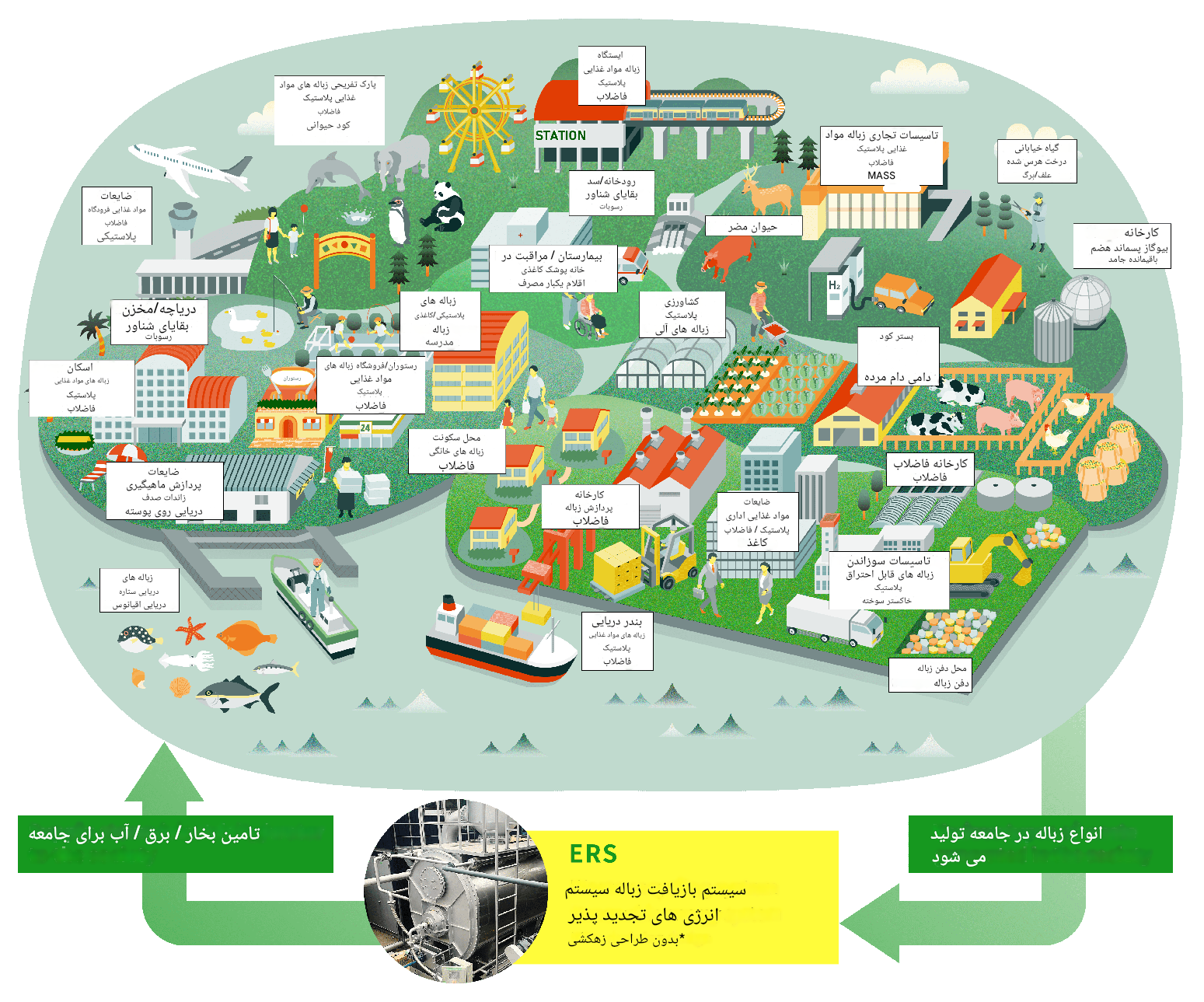 ضایعات می توانند منابع ارزشمندی باشند. MSW، پوشک استفاده شده، فضولات انسانی، لجن فاضلاب، دفع دام، ضایعات کشاورزی، بقایای مواد غذایی، مواد غذایی بسته بندی شده دور ریخته شده، زباله های ساختمانی، چوب ضایعات، علف های بریده شده – همه این ضایعات می توانند منابع ارزشمندی توسط ERS بدون اینکه صرفا دور ریخته شوند.